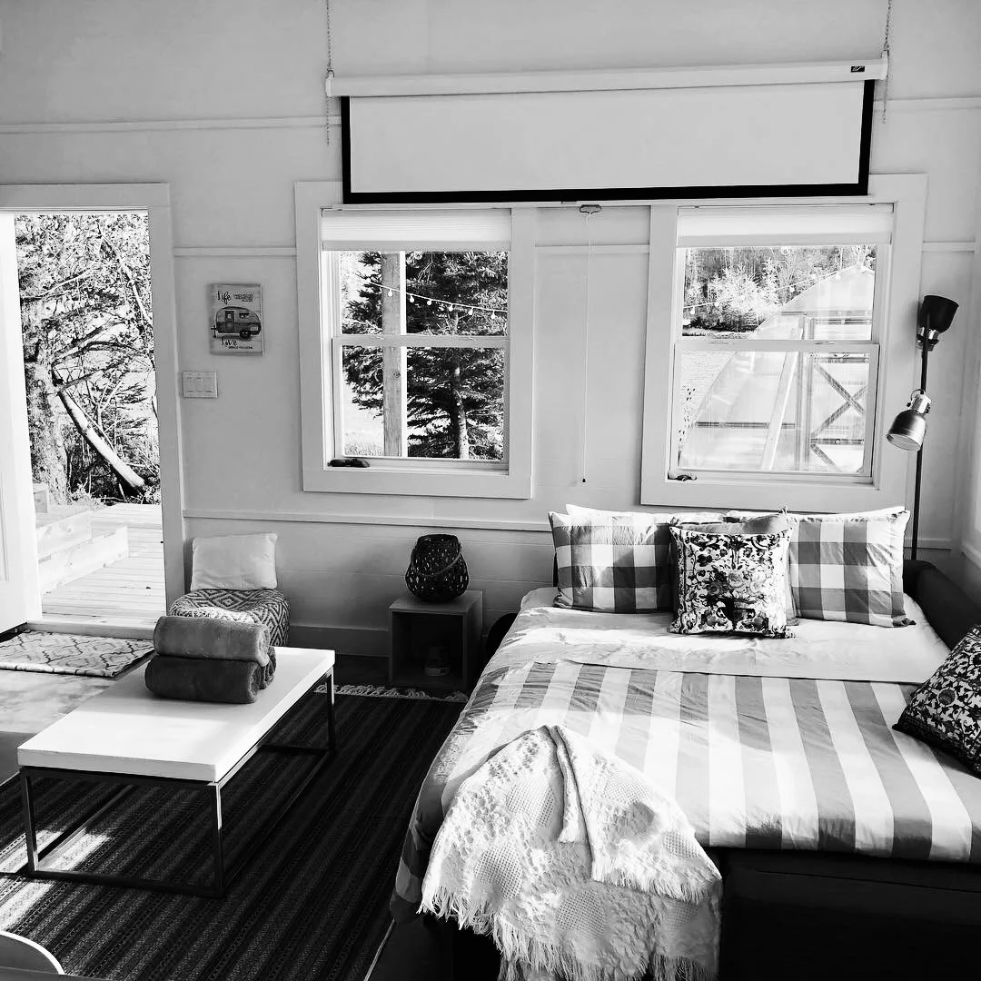 A custom 16’ x 22’ oceanfront tiny home designed and built by Samuel Rad, blending compact luxury with sustainable, high-performance construction. Features include heated polished concrete floors, full kitchen and bathroom, smart lighting and heating, projector TV, gas fireplace, loft queen bed, and queen sofa bed.